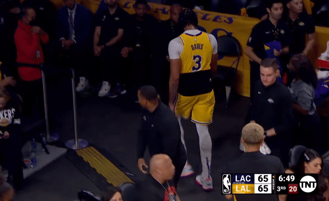 下半场,湖人和快船第三节僵持对战,期间浓眉重摔倒地太惊险,所幸身体无碍可湖人全队突然不得分,被快船打出17-0的攻击波,湖人瞬间落后到两位数;安德森轰进三分为湖人打破僵局,湖人再次追分,詹姆斯造犯规两罚全中,钉板大帽鲍威尔,老詹一条龙暴扣,湖人美女老板珍妮-巴斯开心庆祝,三节打完湖人落后8分。