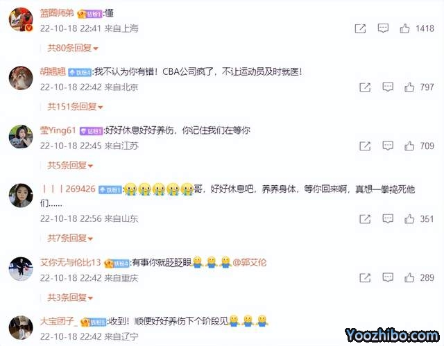 球迷表示:“我不认为你有错!CBA公司疯了,不让运动员及时就医!”“好好休息好好养伤,你记住我们在等你”,“我们都明白 等你伦哥”,“我们都明白 等你伦哥”。罚款10万,停赛6场的处罚,在目前的CBA也的确算是非常严重的处理结果。如果郭艾伦真的有伤病困扰,这个停赛期也不失为他休养的一个机会。