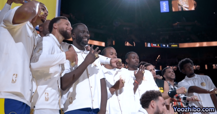 勇士正式领取冠军戒指:库里压轴亮相戒指曝光 众人合影湖人新援抢镜
