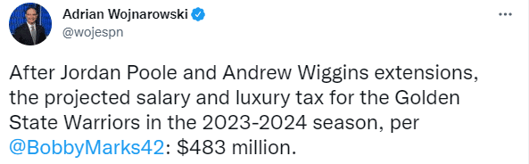 在乔丹-普尔和维金斯续约后,金州勇士队在 2023-2024 赛季的预计薪水和奢侈税总开支将达到4.83亿美元;普尔和维金斯成功续约,而格林则是续约失败,一心想要顶薪续约,再加上此前格林拳击普尔事件,未来格林真的可能离开勇士。