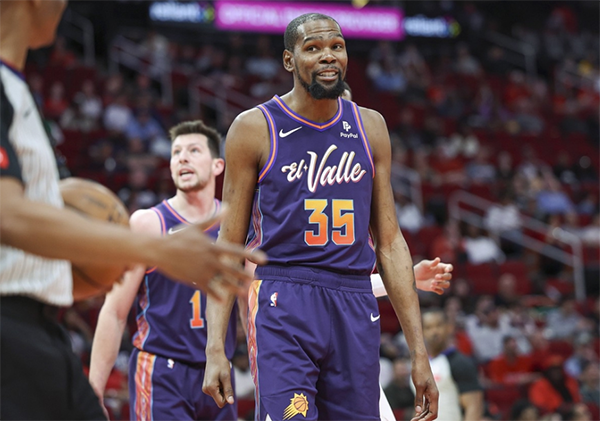 对阵火箭赛前,杜兰特距离超越安东尼仅仅只差22分,比赛正式开打后,杜兰特上半场拿到11分,在下半场末节的一次进攻中,杜兰特终于破纪录,常规赛总得分达到28290分,超越“甜瓜”安东尼(28289分)升到NBA历史得分榜第9位,太阳官方第一时间祝贺KD。