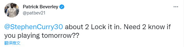 值得一提的是,湖勇季前赛对阵之前,贝弗利公开约战库里,发推写道:@库里,我准备好专注于比赛了。需要知道的是你明天打不打?