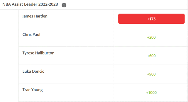 来源:24直播网10-08 22:3224直播网10月08日,2022-23NBA赛季即将正式开启,六大单项数据王的赔率也已出炉!恩比德最被看好蝉联得分王,哈登是助攻王之争的领跑者,而库里在三分王赔率排名上遥遥领先。