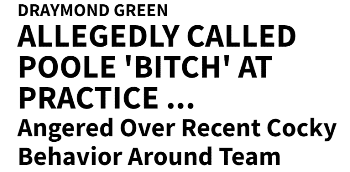 随后TMZ表示,有多位目睹冲突现场的工作人员透露了更多消息。普尔在一次对抗训练中多次叫犯规,格林对此表示不满并反复称其为“婊子”。普尔便说:“你知道这是什么,德雷蒙德。”格林回应到:“不,我不明白,那是什么东西?