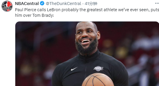 值得一提的是,近日皮尔斯盛赞詹姆斯可能是史上最伟大的运动员。