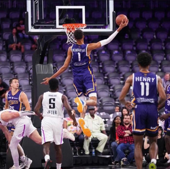 今日再次对阵G联手点燃队,文班亚马再次打出疯狂的表现,出战37分钟24投11中轰下36分11篮板4助攻4盖帽2抢断的全面数据,进攻端大秀灵活脚步、隔扣对手、漂移三分和干拔超远三分,防守端空中拦截,着手遮天太狠了。