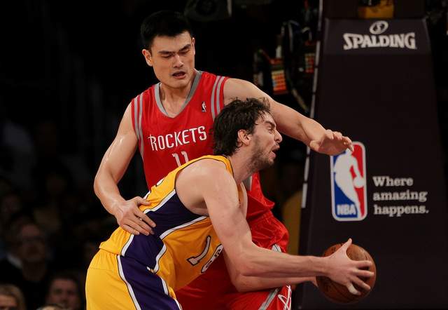 姚明和大加索尔可是NBA的老对手和老朋友了。大加索尔是2001年的探花秀,而姚明是2002年的状元秀,数据显示,姚明和大加索尔生涯交锋23次,在这23次交锋中,姚明场均16.5分9.2篮板2.6盖帽,大加索尔场均18.1分8篮板2.7助攻。两人在国际赛场上也曾捉对厮杀。