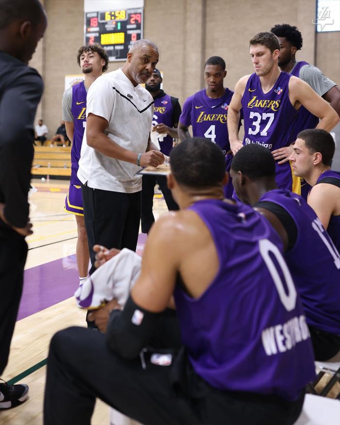 来源:24直播网10-02 15:2424直播网10月02日讯,湖人队内举行训练赛,部分训练赛允许一些媒体记者观看,在湖人公开训练赛上,詹姆斯假投真传助攻队友暴扣、无视队友霸气隔扣,但老詹多次投篮打铁;威少突破犀利但两次抢球摔倒;里夫斯表现出色,斯威德轰进三分。