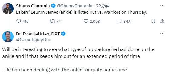 对于詹姆斯的伤势,Jeffries猜测詹姆斯应该是做了脚踝手术,由于遭遇脚踝伤势,他已经缺席一段时间了。