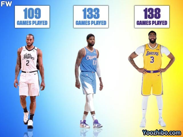 Ramona Shelburne说道:“我知道浓眉的伤病问题是出了名的,巴克利还称他是‘便服小子’,但自2019年来,浓眉出战的场次比莱昂纳德或者乔治都要多。这三年的区间里,浓眉出战138场比赛,而莱昂纳德出战102场(注:实际是109场),乔治出战133场。”