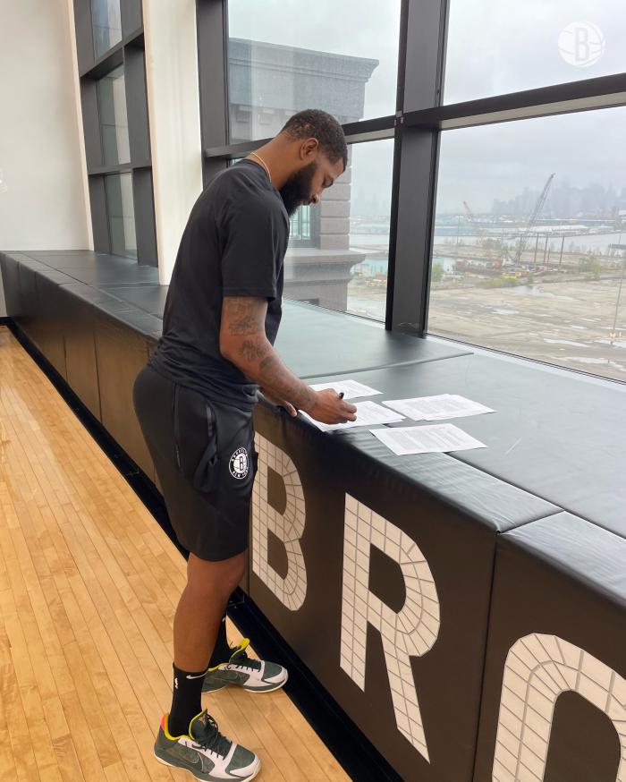 篮网官方宣布,球队正式签下自由球员马基夫-莫里斯,双方签下1年290万美元新合同,篮网欢迎大莫来到布鲁克林,晒出大莫的签约照,新赛季他将身穿篮网22号球衣。