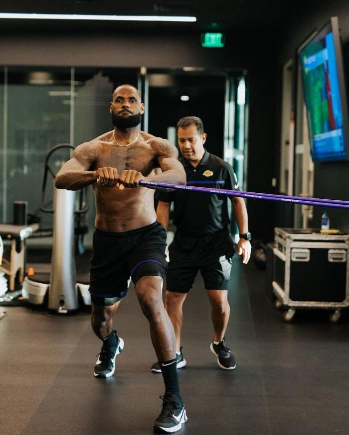 詹姆斯御用训练师迈克-曼西亚斯晒出詹姆斯的训练照,配文写道:劳动节早上6点开始训练,詹姆斯知道他不能停下脚步;湖人助教菲尔-汉迪回复表示赞同,凯文-乐福回复:1A。