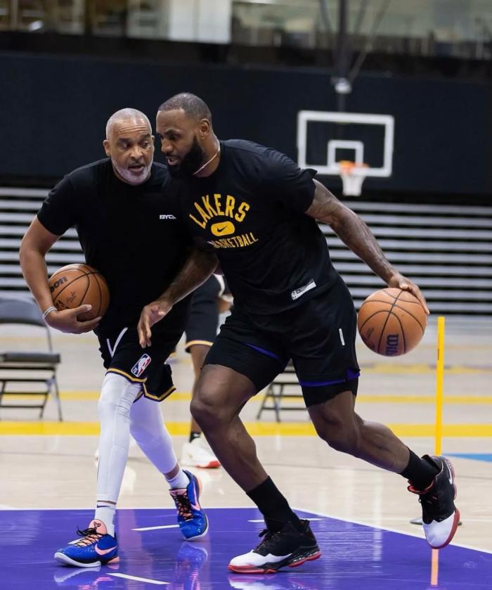 健身房训练之后,詹姆斯和湖人新援小特洛伊-布朗一起训练,两人都身穿湖人训练服,期间詹姆斯为布朗讲解进攻的脚步,亲自指导23岁新援,菲尔-汉迪也在现场;汉迪晒训练画面,配文写道:当你热爱它时,它就不是工作,第20年,就连一天都没停歇过。