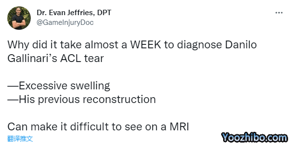 为何加里纳利的伤情确诊推迟了一周?医学专家Evan Jeffries表示,加里纳利的膝盖现在肿胀严重,以前修复过十字韧带,核磁检查很难确定。
