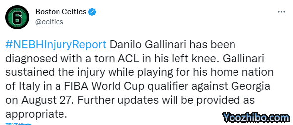 对于自己惨遭重伤,加里纳利本人发声:这对我来说是艰难的一周,因为我了解到我的伤到了什么程度。篮球对我来说意味着一切,不能和凯尔特人的队友们一起在球场上打球让我很伤心。