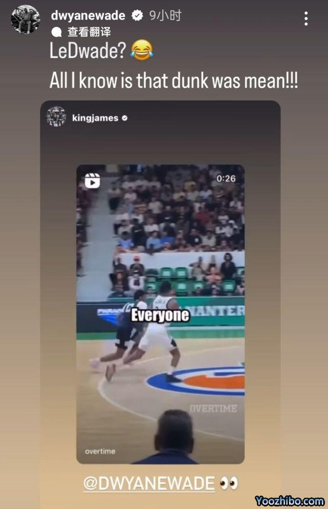 Overtime写道:“布朗尼似乎更像他的韦德叔叔。”他们从身高到扣篮动作进行比较后,得出了上述的结论。詹姆斯艾特韦德,仿佛也认可这样的说法。韦德在社媒上回应:“LeDwade?(笑哭表情)我只知道这扣篮太牛了!”显然,韦德这是给侄子布朗尼送了个新外号:LeDwade,把詹姆斯和韦德的姓名结合在一起了。
