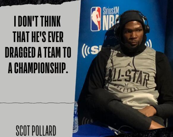 前NBA球员斯科特-波拉德在一档节目上炮轰杜兰特,表示KD从未率领自己的球队夺冠,并质疑他总在换队能有多强。