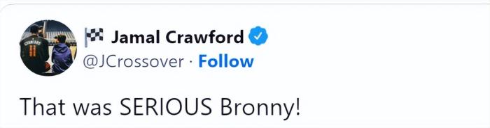 詹姆斯也在社媒上第一时间发推,转发布朗尼的扣篮视频,并写道:“我的老天啊!布朗尼!(配上多个惊讶表情包)” 他还转发了自己和布朗尼扣篮的对比视频。库里、莫兰特、克劳福德等人也纷纷转发扣篮视频,称赞布朗尼不可思议的表现。