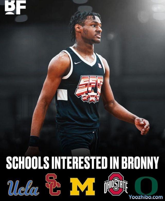 此前有报道称,布朗尼已经接到了UCLA、密歇根、俄亥俄、俄勒冈与南加州大学等多家名校的邀请。后续还会有不少学校向他发出邀请。布朗尼预计会在2024年参加NBA的选秀大会。詹姆斯也明确表示希望能够在生涯最后一年与儿子成为队友。