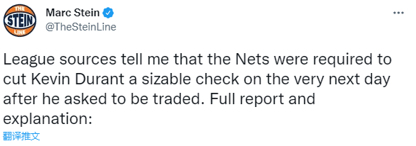 这笔2148.4万美元的部分薪水将在7月2日和10月2日分成两笔同等的数额发给杜兰特,值得一提的是,杜兰特在第一笔薪水到帐前一天正式提出交易请求,而他第二天仍收到第一笔薪水(约等于1074万美元)。