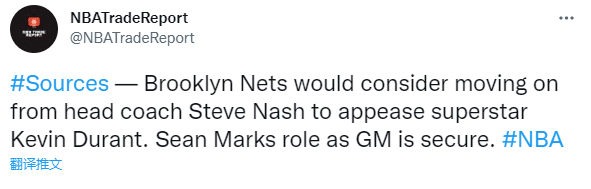 杜兰特逼宫只是想要离队的一种手段,据美媒报道,篮网考虑解雇纳什从而安抚超级巨星杜兰特,肖恩-马克斯的总经理位置是安全的。
