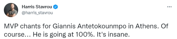 字母哥的疯狂表现征服全场,上半场10分钟拿到13分,下半场10分钟更是轰下18分,雅典球迷为他高呼MVP,赛后雅典球迷迟迟不愿离场。
