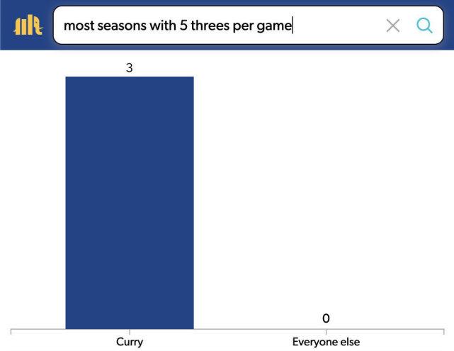 3、库里4次单赛季至少命中300记三分,史上其他球员加起来仅1次(哈登378记三分);库里单赛季402记三分历史唯一。