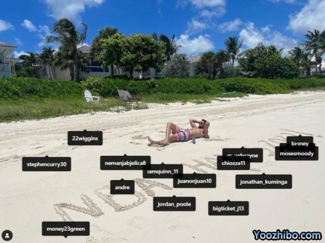 克莱晒日光浴也整活!沙滩写上2022年总冠军 为勇士队友安排位置
