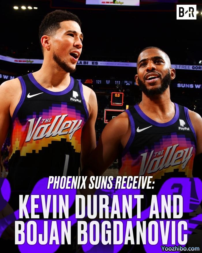 太阳交易沙梅特、佩恩等多名球员并且搭上四个首轮签,得到杜兰特和博扬-博格丹达诺维奇