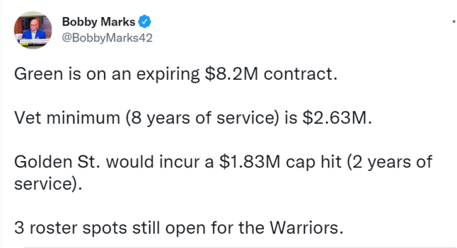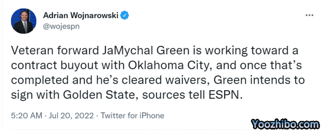 来源:24直播网07-20 10:4724直播网07月20日讯 ,据名记Woj报道,老将贾麦考-格林将和雷霆买断合同,度过澄清期后计划加盟勇士。在此前的一笔交易中,贾麦考-格林被掘金交易到雷霆,这位32岁的老将无意为重建球队效力,双方达成买断,也给了格林冲击冠军的机会。勇士为格林提供1年263万美元的老将底薪。