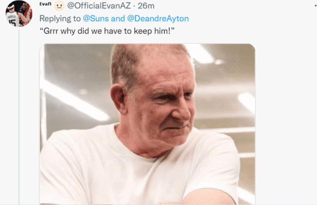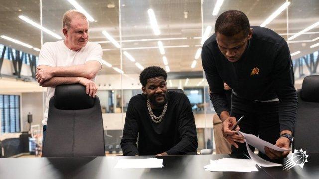 太阳官方随后放出了艾顿签约现场的三张图,而球迷们很快调侃起老板萨弗和艾顿在签约时的表情。