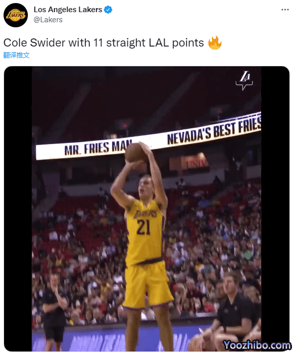 今日一战,湖人第一节19-27落后8分,但第二节33-17打爆鹈鹕并且扭转局面,斯威德上半场贡献8分;到了下半场,斯威德第三节大爆发,开场连续轰进两记三分,急停中投后再中追身三分,短短116秒连得11分点燃替补席,湖人官方发推盛赞斯威德。