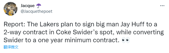 湖人想要如此操作,一方面是斯威德在夏联的表现很出色,多次单场至少命中5记三分球,他的投射是湖人最需要的;另一方面湖人想用双向合同留下胡夫。