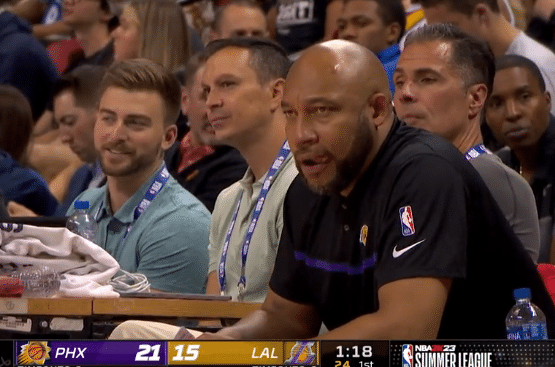 来源:24直播网07-09 11:3024直播网07月09日讯,NBA夏季联赛展开争夺,湖人对阵太阳,本场比赛詹姆斯和威少场边观战。前两节,张镇麟并未出场,湖人落后6分,小皮蓬拿到15分,詹姆斯为他鼓掌。