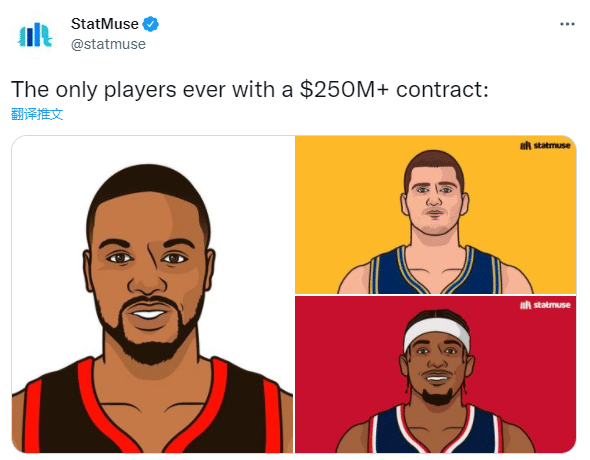 3、此次续约后,利拉德生涯总薪金将达到4.36亿美元(shams报道是4.51亿美元)排名历史第四,仅次于杜兰特(4.95亿)、库里(4.7亿)和比尔(4.5亿)。