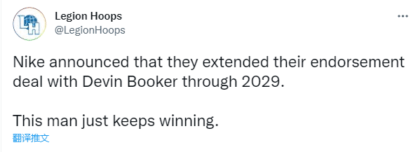 三是布克和耐克续签6年的代言合同,双方合同延长到2029年;自从进入联盟以来,布克一直代言耐克,未来7年他仍旧代言耐克,靠代言再赚一笔。