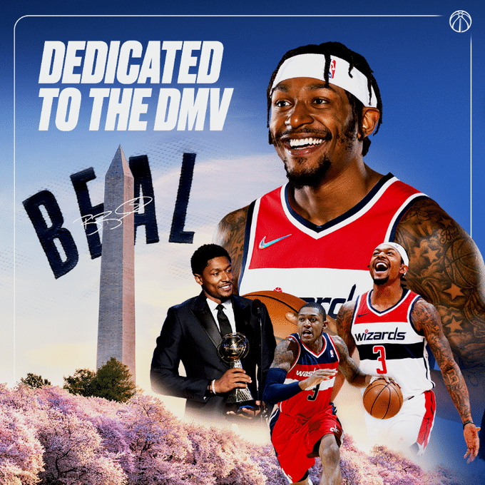2021-22赛季,比尔为奇才出战40场,场均23.2分4.7篮板6.6助攻;签约后,比尔表示:我已经把奇才队和球迷当成家人 梦想是帮助华盛顿夺冠。