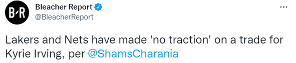对于欧文的情况,shams表示:湖人对于欧文的任何交易报价都没有吸引力,没有什么新鲜事,我不确定我们是否会看到这笔交易的发生。