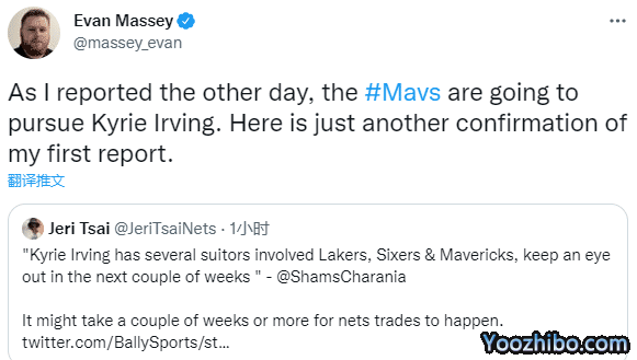 除了湖人之外,名记shams在节目中表示76人和独行侠也有意引援欧文,接下来的几周值得密切关注;由于杜兰特和欧文两大球星都可以被交易,全联盟都在关注他们的未来,导致交易市场就像被冻结了似的。