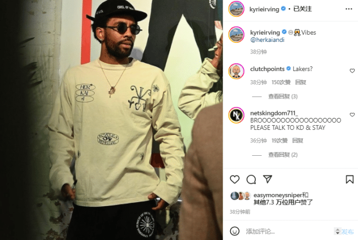 杜兰特申请离队闹得沸沸扬扬,欧文的心情貌似很轻松,更新社媒晒出休闲照,配文写道:氛围(碰杯表情);篮网球迷在评论区请求欧文劝说杜兰特留下来;值得一提的是,杜兰特点赞了欧文的动态,这是KD请求离队后首次这样做,不得不说,杜欧两人的关系真好。