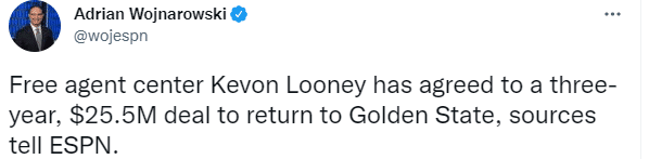 勇士留队第一人!卢尼续签3年2550万助库里卫冕 别利察离开NBA