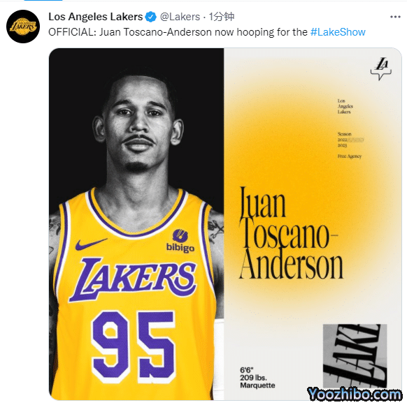 湖人欢迎勇士旧将安德森加盟球队,21-22赛季,29岁安德森为勇士出战73场比赛,场均4.1分2.4篮板和1.7助攻,此前他的经纪公司宣布安德森改穿21号球衣,如今湖人宣布安德森继续穿95号球衣。