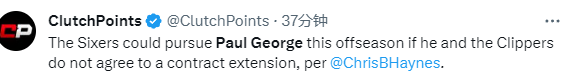 名记Chris Haynes透露,如果乔治无法与快船达成续约,76人预计将对他展开追求。乔治的合同将在本赛季结束后到期。