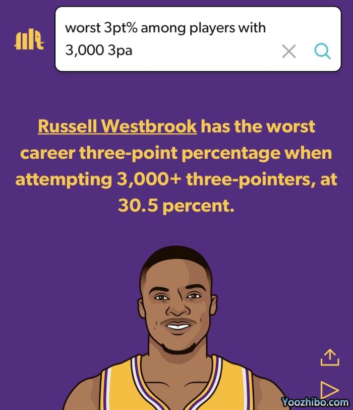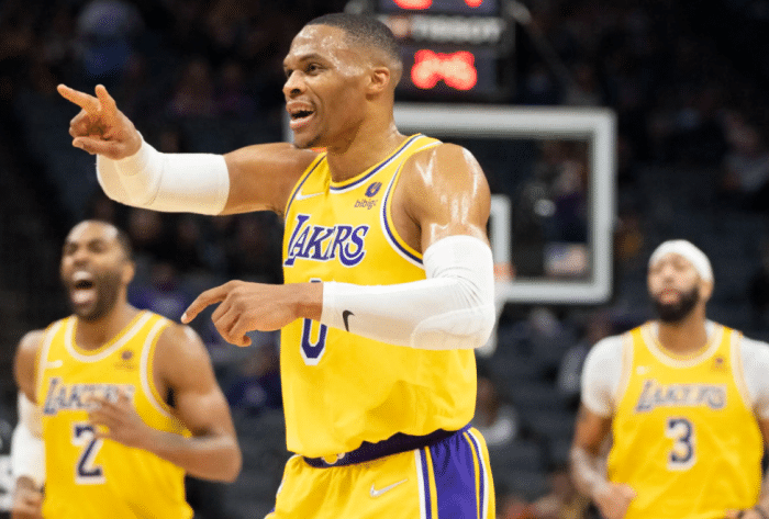 2021-22赛季,威少为湖人出战78场比赛,场均拿到18.5分7.4篮板7.1助攻1抢断,投篮命中率44.4%、三分命中率29.8%和罚球命中率66.7%;据统计,威少是NBA史上至少出手3000次三分的所有球员中三分命中率最差的球员,命中率为30.5%。