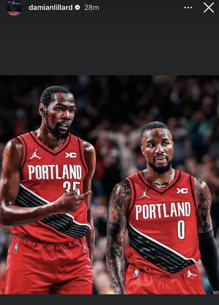 此前利拉德晒出杜兰特身穿开拓者35号球衣的P照,公开表达想要联手杜兰特的意愿。