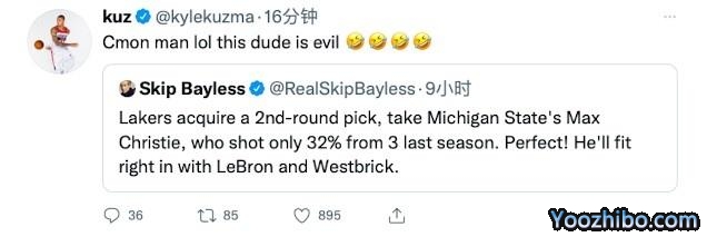 当时奇才球员库兹马第一时间替前东家发声,发推回应:拜托,这家伙简直魔鬼!
