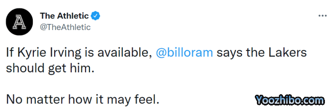 湖人已经连续两个赛季让球迷失望,而总经理佩林卡的饭碗已经不稳了。Oram指出欧文是7届全明星,仍处于巅峰时期,是未来的名人堂球员。最重要的一点,他和詹姆斯有很好的化学反应,至少比湖人现任控卫(威少)要好得多。
