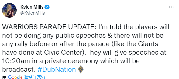 对此勇士媒体Warriorsworld发推写道:总冠军在旧金山没有演讲和集会太荒谬了。