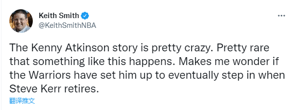 名记Keith Smith随后发推就阿特金森的这个决定发表了看法,他写道:“阿特金森的决定很疯狂,在NBA历史上很少发生这样的事。这让我想知道勇士是否会在科尔退休后让阿特金森接任。