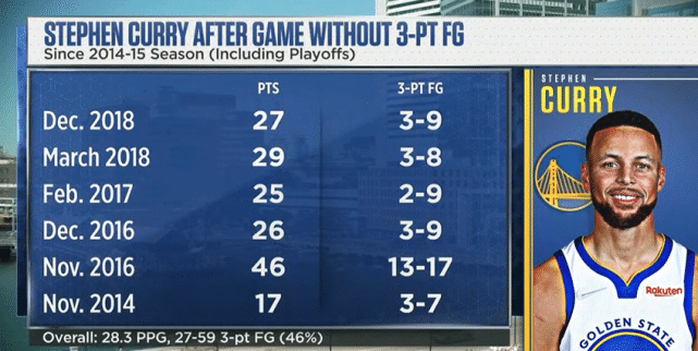 同样值得期待的还有汤普森的后场搭档库里,昨天有记者提到G6库的话题,库里调侃自己不会抢走汤普森的外号。G5一战,库里三分球9投0中,连续233场至少命中一记三分的纪录就此中断。美媒晒出了库里以往没能命中三分后第二场的表现(常规赛+季后赛):场均28.3分,三分命中率高达46%(59投27中)。最疯狂的是2016年11月的那场比赛,他狂轰46分,三分17中13!